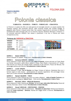 Polonia classica con Danzica da Varsavia a Cracovia 8 giorni
