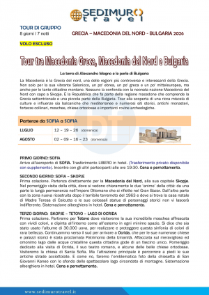 Tour tra Macedonia Greca, Macedonia del Nord e Bulgaria da Salonicco 9 giorni