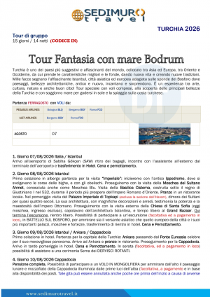 Tour Fantasia con mare Bodrum con volo da BGY, BLQ e FCO a Ferragosto 15 giorni